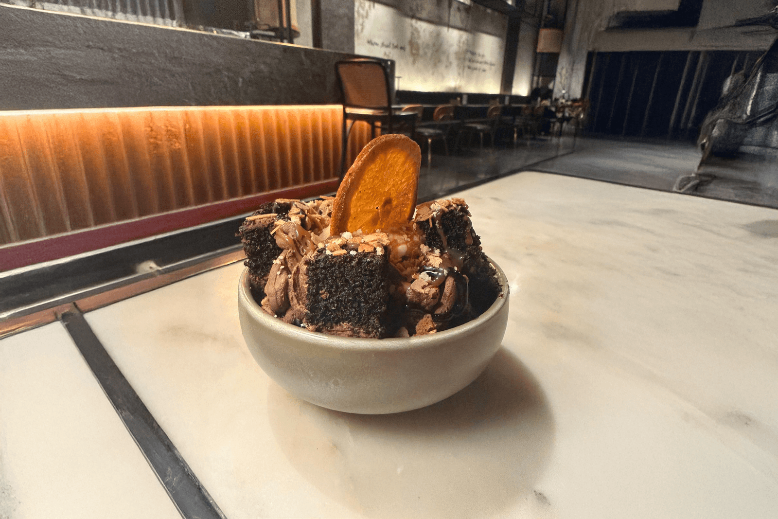 طبقات من موس الشوكولاتة وبسكويت الشوكولاتة، مع آيس كريم كراميل ناعم، وتزيين شوكولاتة غني، يعلوها بقطع فويتيين مقرمشة ولمسة فريدة من فاكهة الكيوي المجفف.