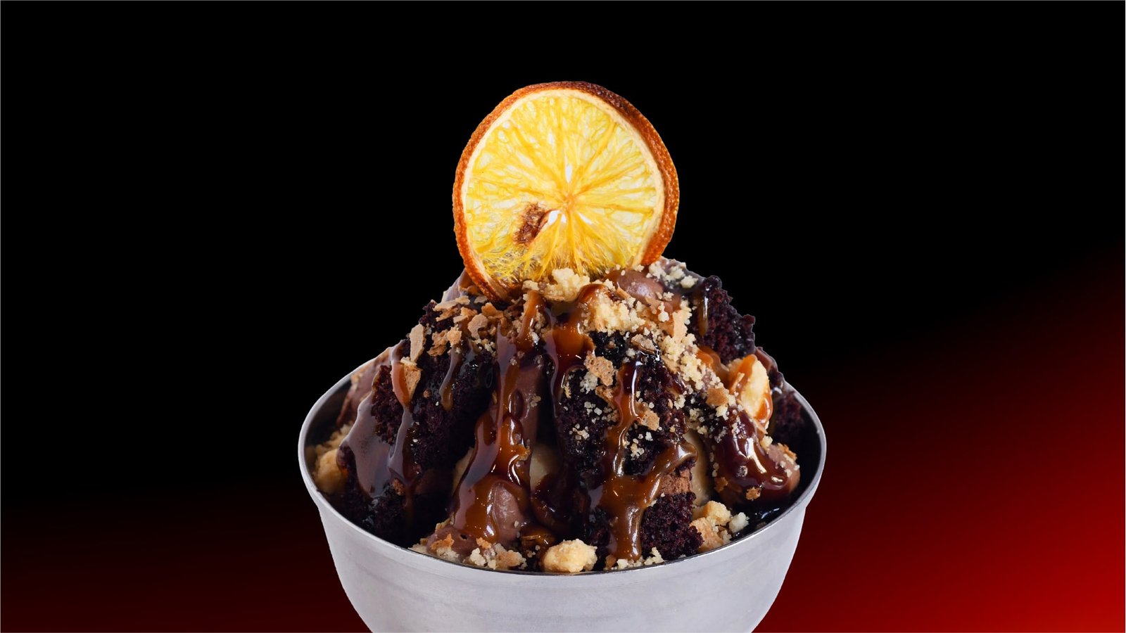 Layers of chocolate mousse and chocolate biscuit, topped with smooth caramel ice cream, rich chocolate garnish, crispy feuilletine , and a touch of dried kiwi for a unique finish.