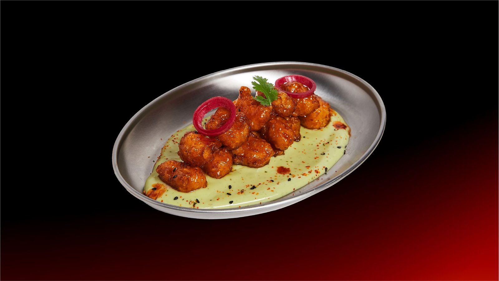 Crispy golden shrimp marinated in Sriracha, glazed with matcha-infused sauce, creating a fusion of spicy, creamy, and subtly earthy flavors